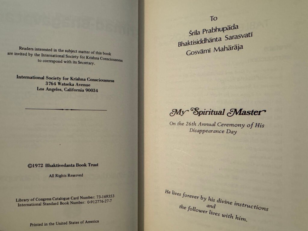 The first printings of the Srimad Bhagavatam (beginning after the Delhi edition which Srila Prabhupada brought with him from India) are the printings Srila Prabhupada wanted printed again after expressing serious concern and frustration over the many unauthorized changes that had been made to newer printings. Srila Prabhupada referred to these printings as “originals” in 1977 and we like to refer to them as such. The first printing year is progressively different for each canto and sometimes even for different parts of the same canto. This is because the cantos and their parts were printed as Srila Prabhupada completed them, which leaves us with a range from 1972 to 1980 for the first printings of each canto and their sub-parts. The Tenth Canto Part Three of the Bhagavatam, printed in 1980, was the only part of a canto printed after the physical disappearance of Srila Prabhupada in 1977. Srila Prabhupada dictated the translation and purports up until the final moments of his physically manifest presence with us, with Verse 64 of Chapter 13 being the last verse in Part Three. Those 13 chapters were finally published in a small, final printing (Part Three) of the Tenth Canto in 1980.